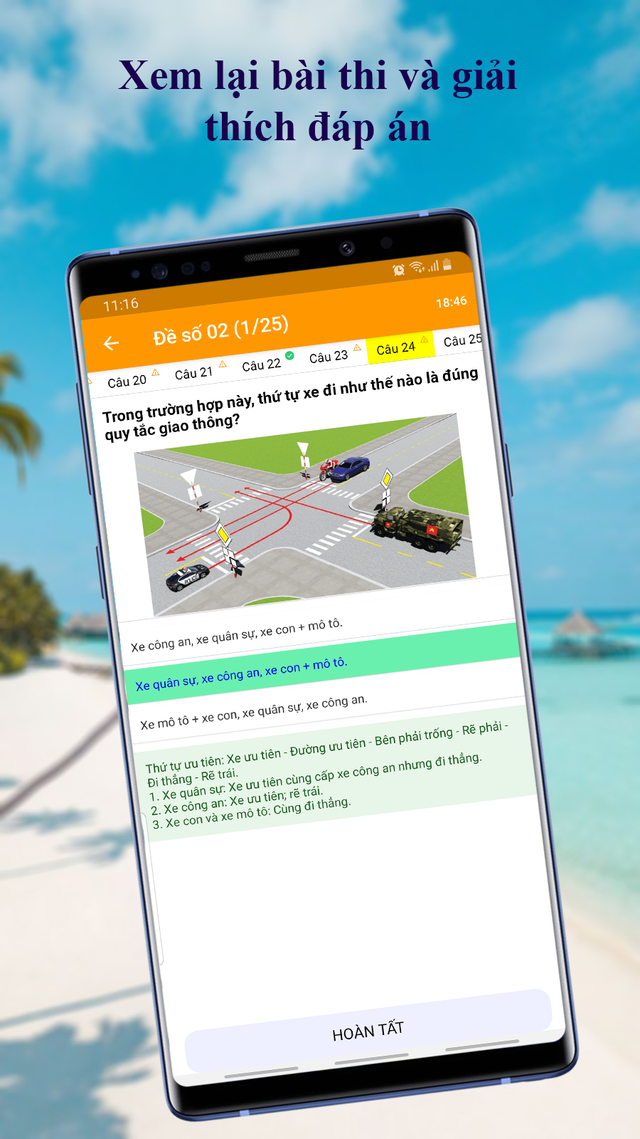• Chế độ thi và chấm điểm sau khi thi, xem giải thích đáp án chi tiết nhất